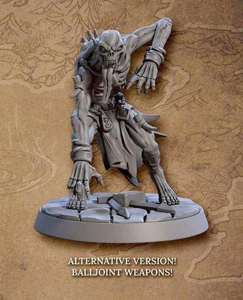 Miniatures will be cleaned, supports removed, and cured before sending. Some minimal marks may remain, but should not be visible after painting. Bases are included where shown. Miniatures are sold unpainted - any painted pictures are for reference only.