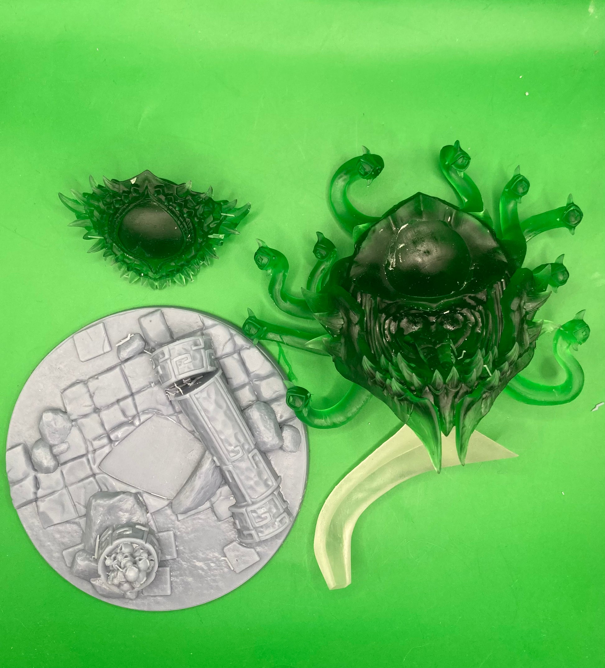 Miniatures will be cleaned, supports removed, and cured before sending. Some minimal marks may remain, but should not be visible after painting. Bases are included where shown. Miniatures are sold unpainted - any painted pictures are for reference only.
