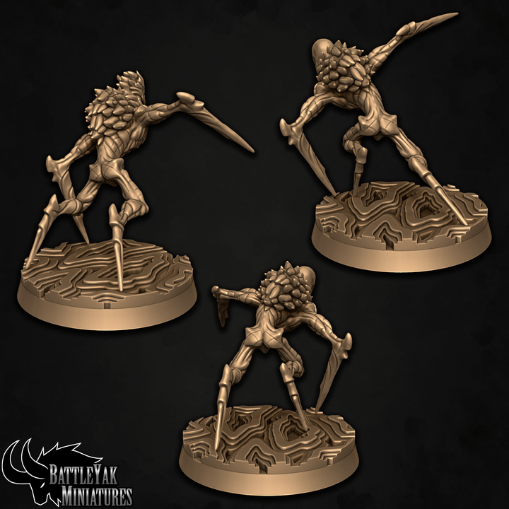 Miniatures will be cleaned, supports removed, and cured before sending. Some minimal marks may remain, but should not be visible after painting. Bases are included where shown. Miniatures are sold unpainted - any painted pictures are for reference only.