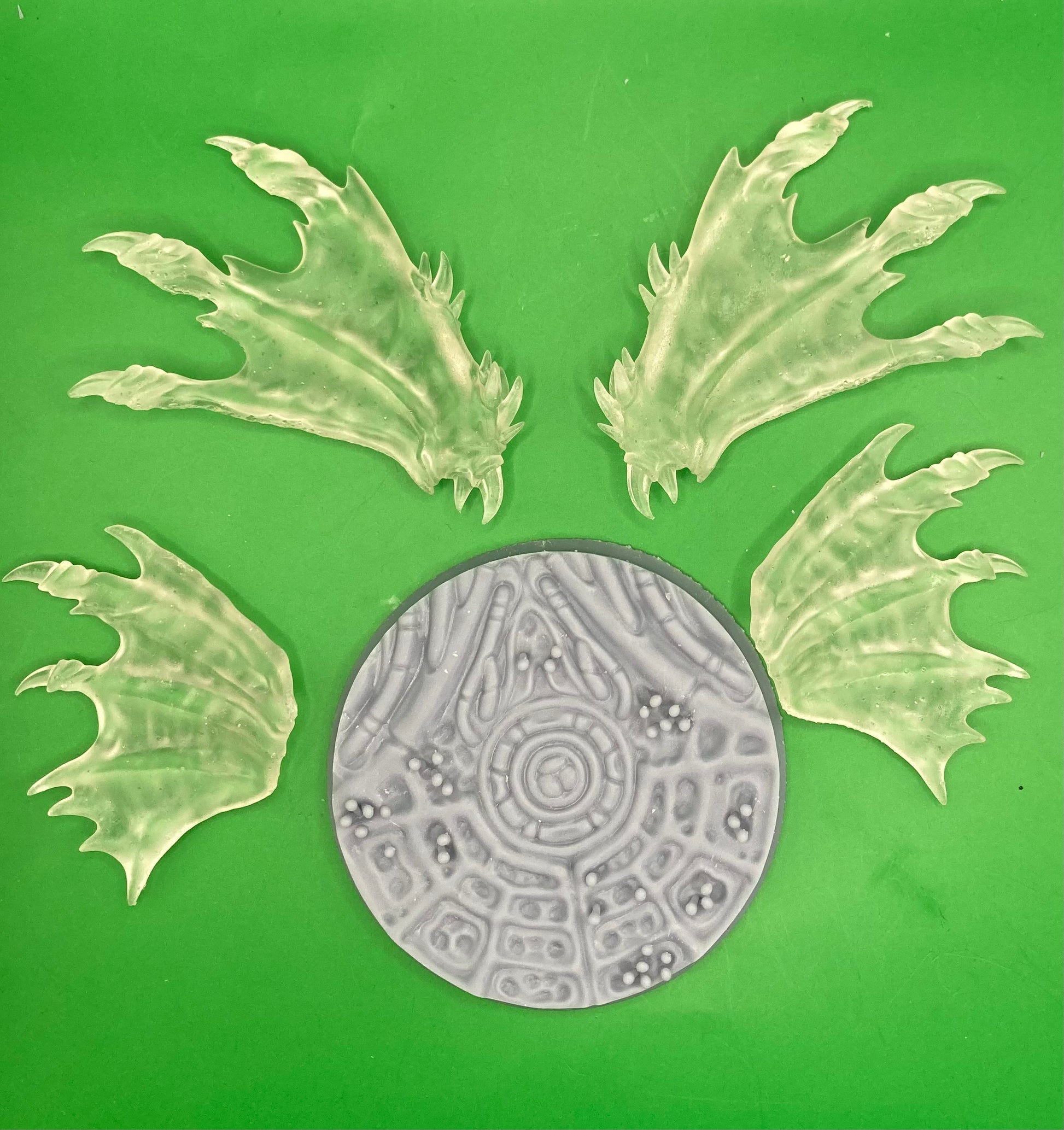 Miniatures will be cleaned, supports removed, and cured before sending. Some minimal marks may remain, but should not be visible after painting. Bases are included where shown. Miniatures are sold unpainted - any painted pictures are for reference only.